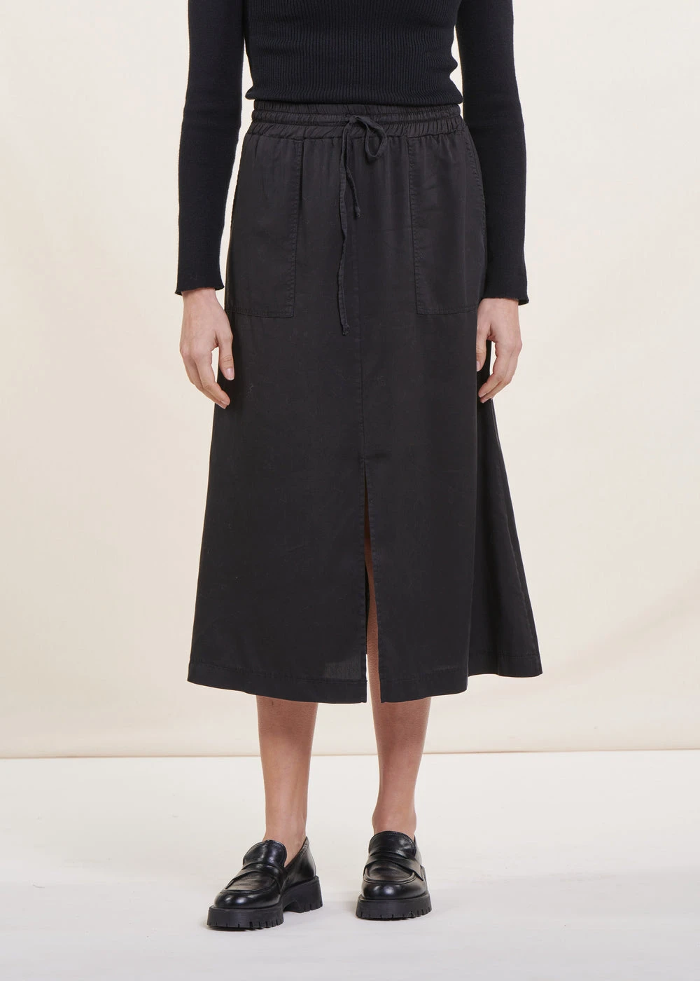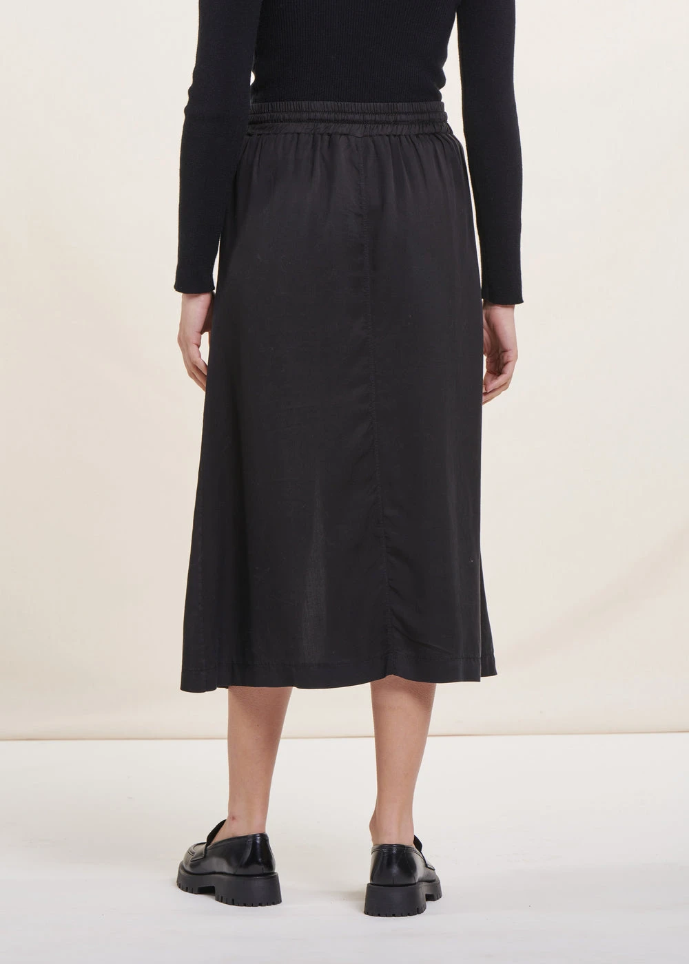 – Jupe mi-longue dans un tissu fluide et léger en Lyocell