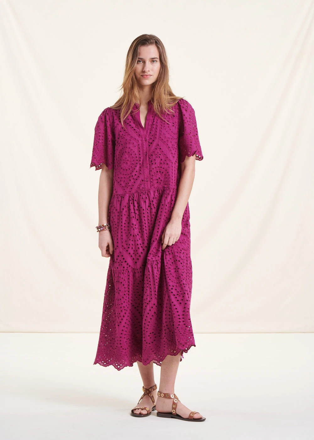 – Robe longue en broderie anglaise