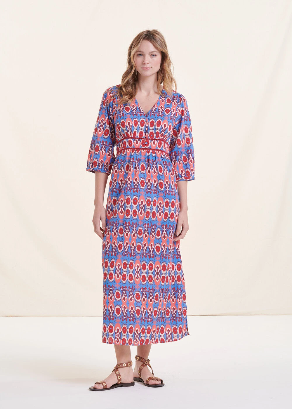 – Robe longue de cérémonie en coton biologique à imprimé