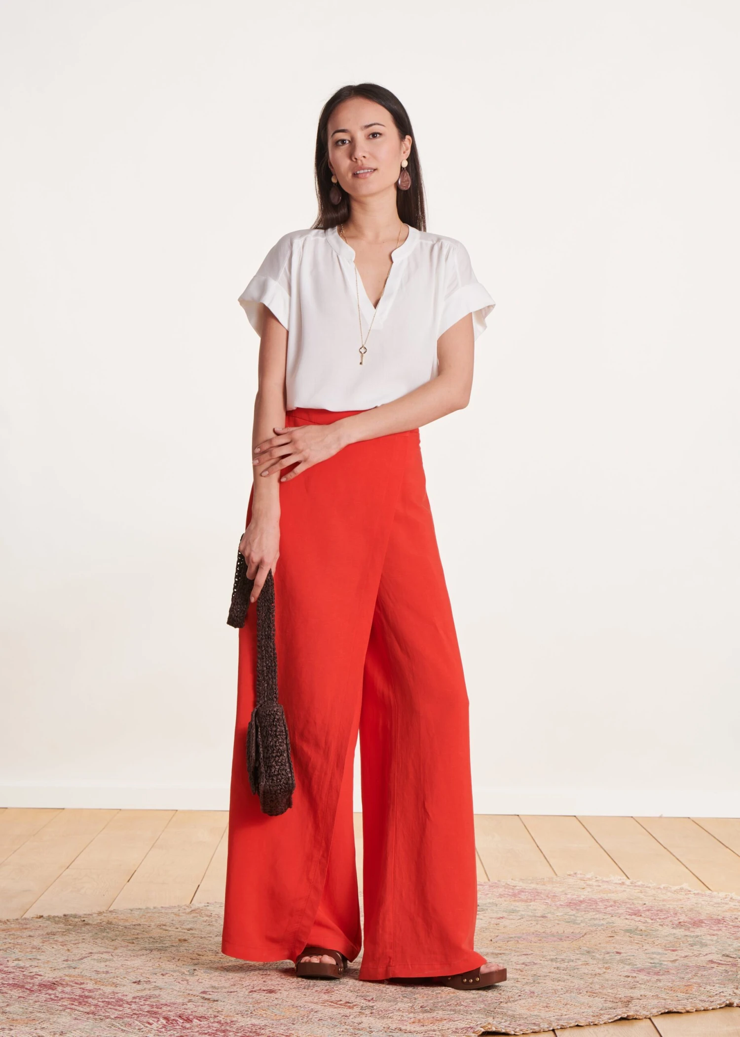 – Tee-shirt bi-matière en voile de viscose sur le devant et en jersey lyocell coton dans le dos